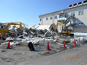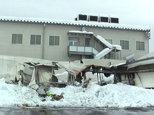 2014年2月15日早朝、秩父地方を襲った未曾有の降雪により、当社秩父工場のテント倉庫が2棟倒壊しました。